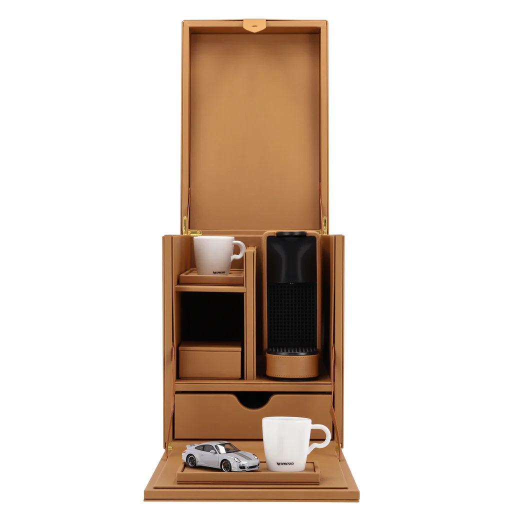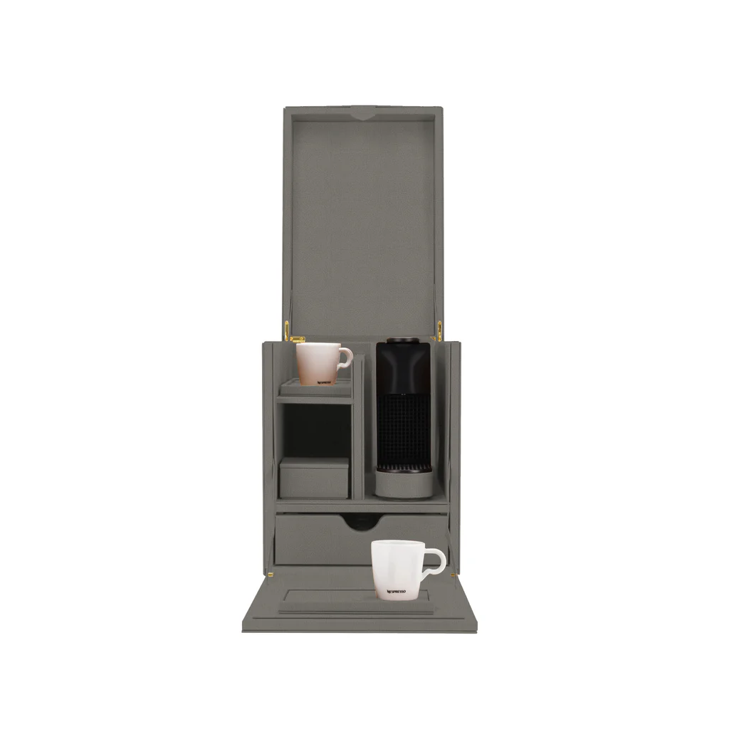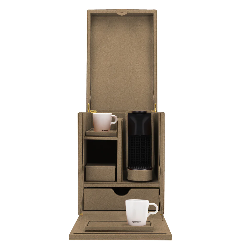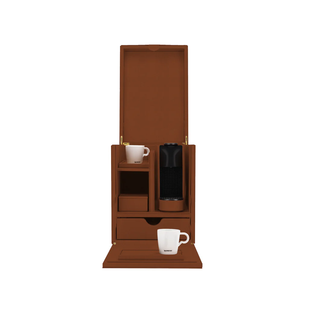 Compacta y completamente cubierta de cuero para una experiencia de café refinada